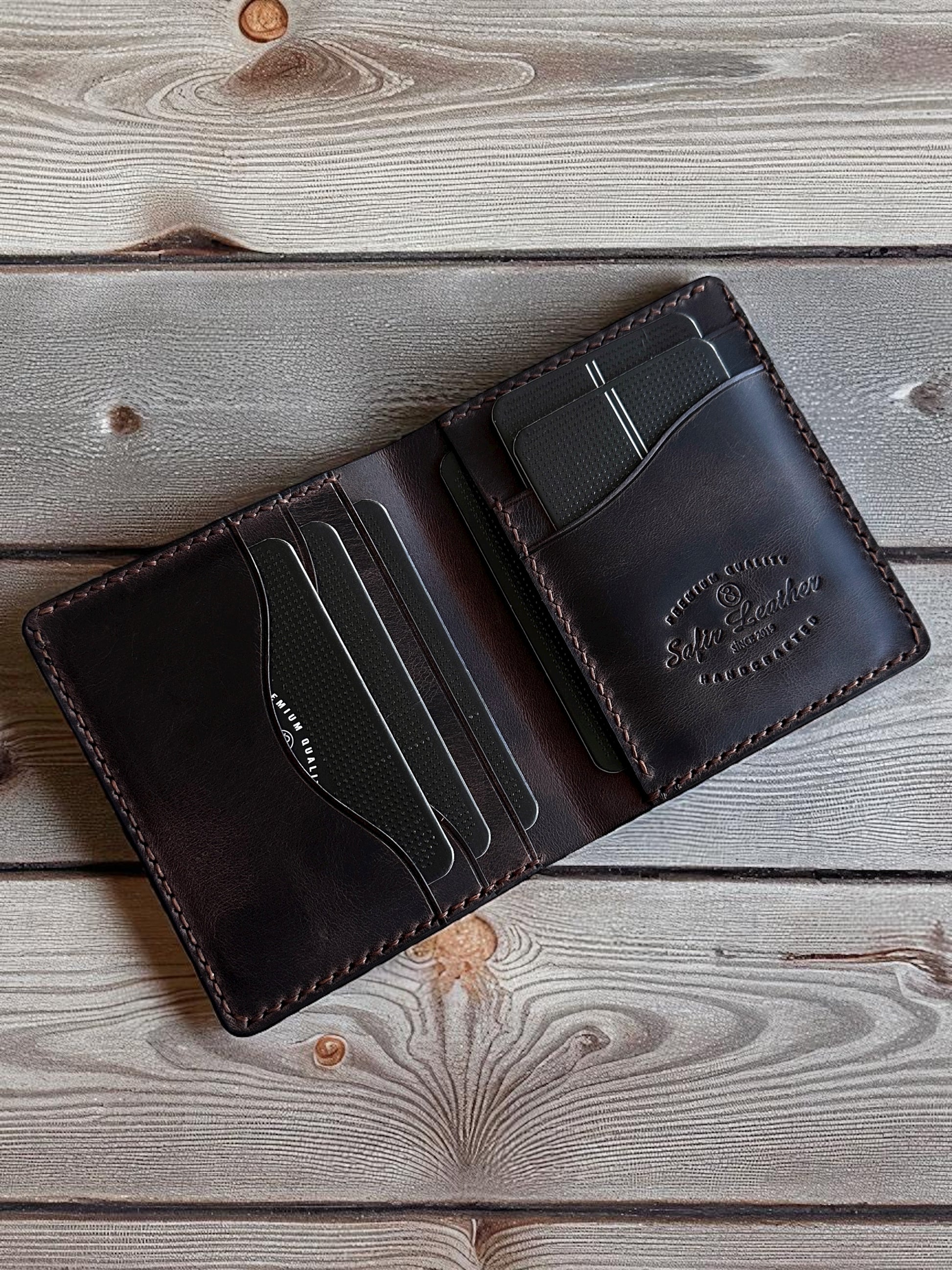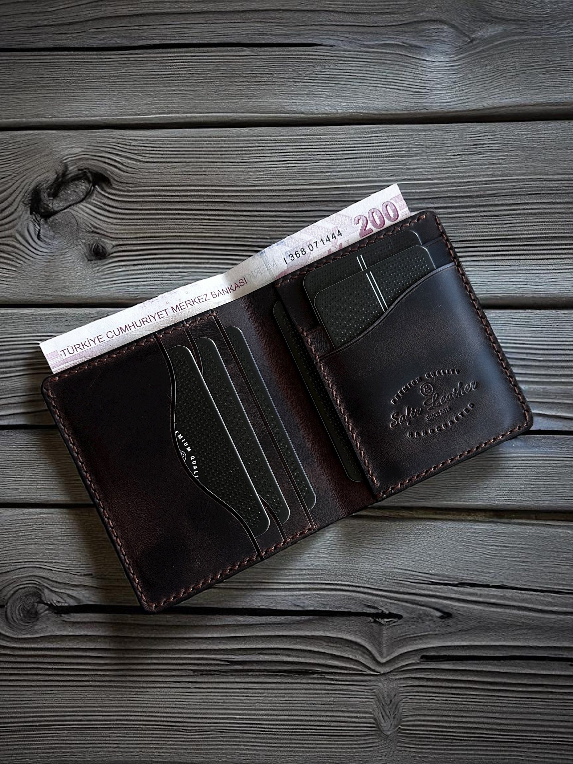 Merhaba! Safir Leather olarak, el yapımı deri cüzdanlarımızla tanıştığınız için çok mutluyuz. 😊 Bu cüzdanımız, özenle seçilen hakiki deriden tamamen elde üretildi. Biz, kaliteye ve detaylara önem veren küçük bir ekibiz, bu yüzden her bir cüzdanımızı büyük bir özenle hazırlıyoruz. Amacımız, yıllarca yanınızda olacak, dayanıklı ve zamansız bir aksesuar sunmak.